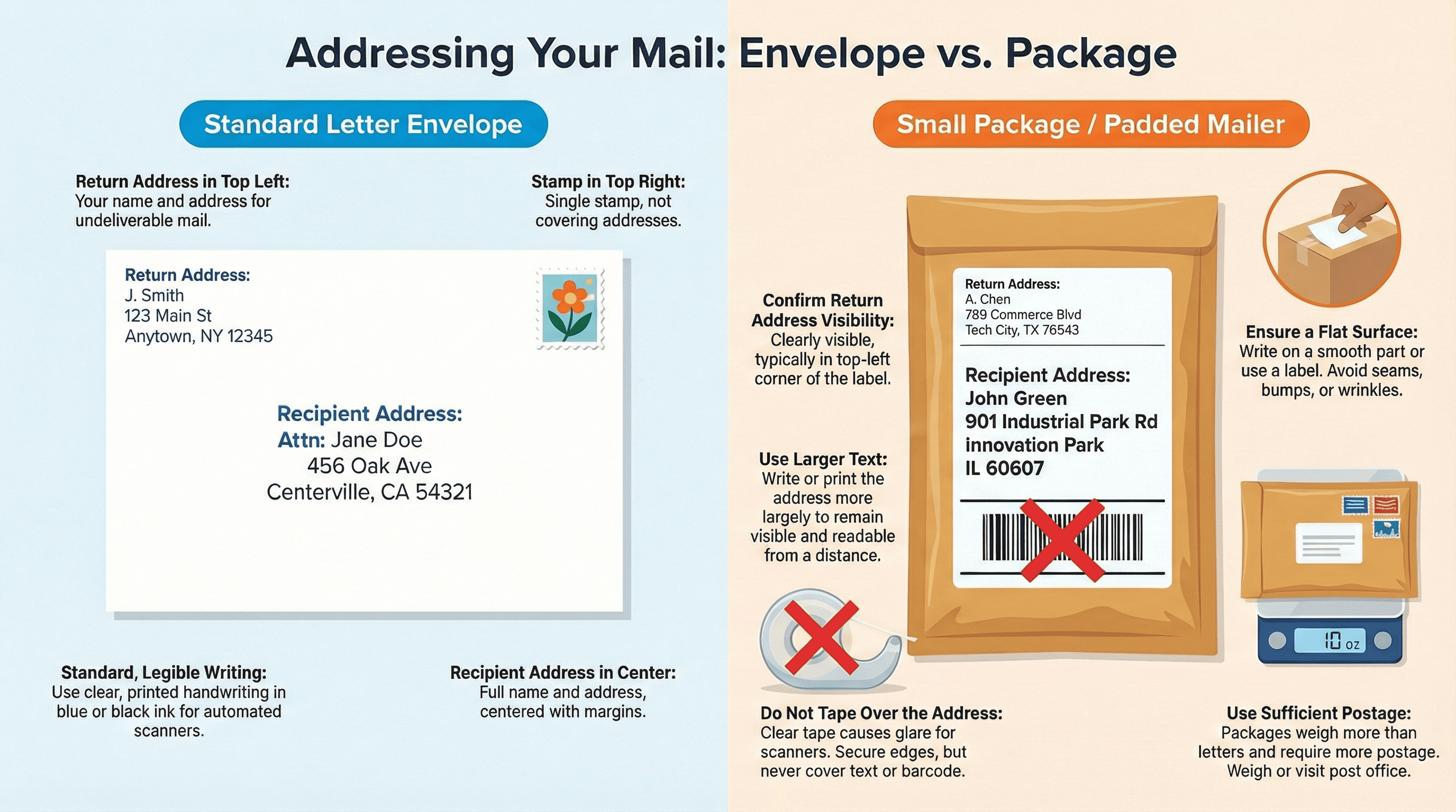 - Keep the address flat (no wrinkles)